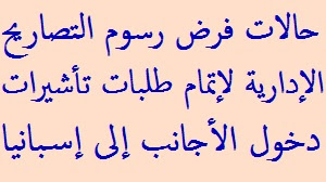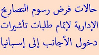الحالات التي تفرض عليها الرسوم الخاصة بالتصاريح الإدارية والخاصة بإتمام معاملات طلبات تأشيرات دخول الأجانب إلى إسبانيا: