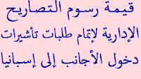 قيمة الرسوم الخاصة بالتصاريح الإدارية والخاصة بإتمام معاملات طلبات تأشيرات دخول الأجانب إلى إسبانيا: