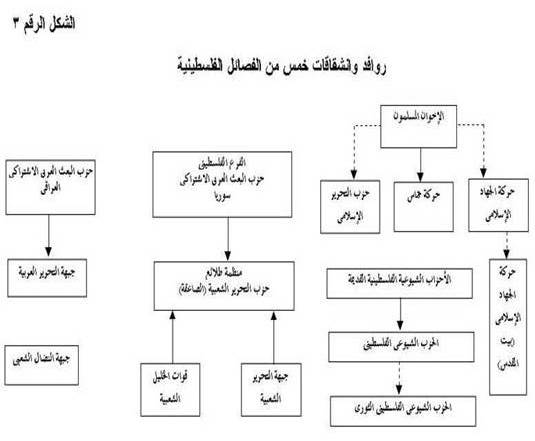 لم تتعرض "الصاعقة"، ولا "جبهة التحرير العربية" لأيّ انشقاقات، لأنهما تنظيمان، يخضعان لحزب حاكم في دولتَين عربيتَين. ولم تتعرض "جبهة النضال الشعبي" أو (حماس) لأيّ انشقاقات. تعرض الحزب الشيوعي لانقسام وحيد.